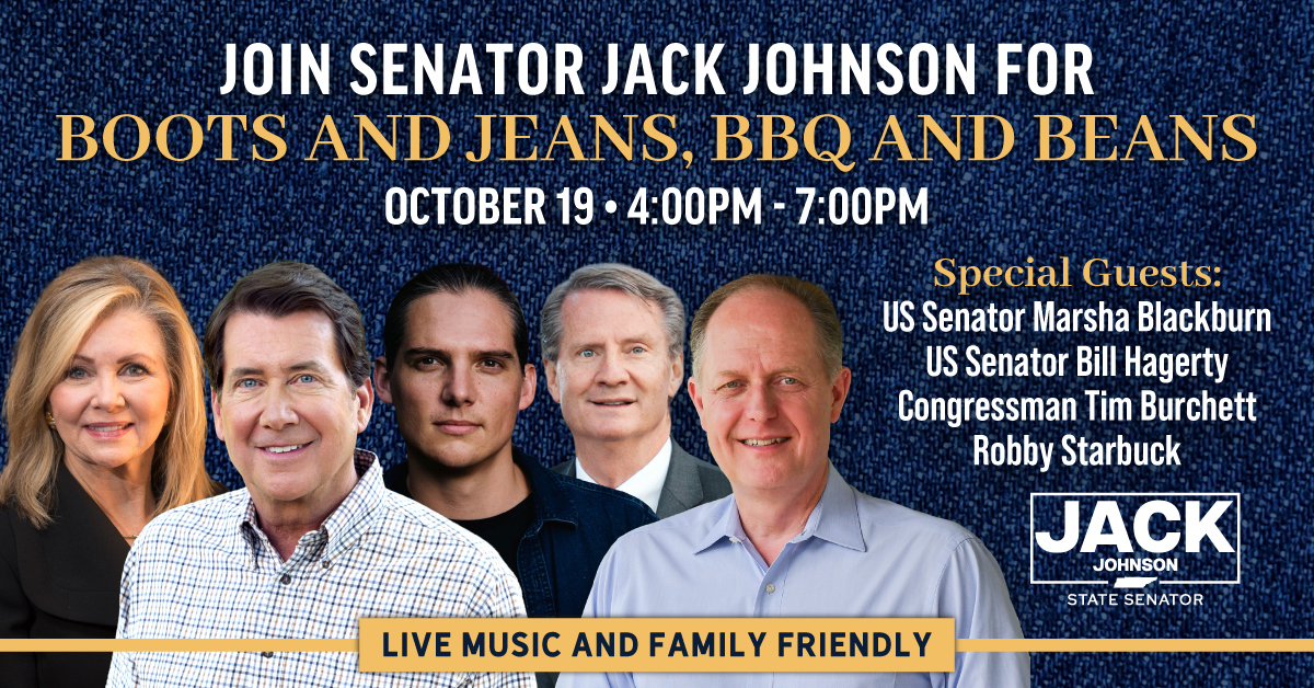 Jack was first elected to the Tennessee State Senate in 2006. Since his first day in office he has proudly represented Tennessean’s conservative values. Jack knows that conservative values are Tennessee values, which is why he always fights to lower taxes, defend constitutional rights, secure our southern border, protect our most vulnerable and ensure parents’ always have a voice in their children’s education.